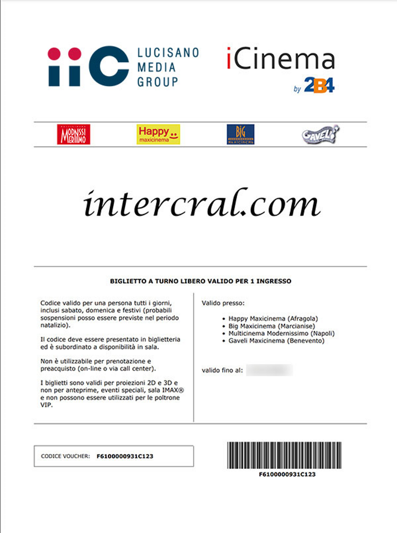 - E’ valido presso i cinema Big Maxicinema (Marcianise), Cinema Delle